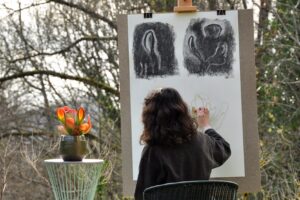 On this en plein air art holiday in France, you can have fun experimenting with all kinds of materials—from charcoal and graphite to ink, watercolour, acrylic, soft pastels, and oil pastels. You’ll also get to try out different types of paper. Whether you’re just starting out or already experienced, you can discover which materials feel right for you. When you book your holiday, you’ll receive your own Atelier Souriant sketchbook, perfect for capturing your favourite flowers.